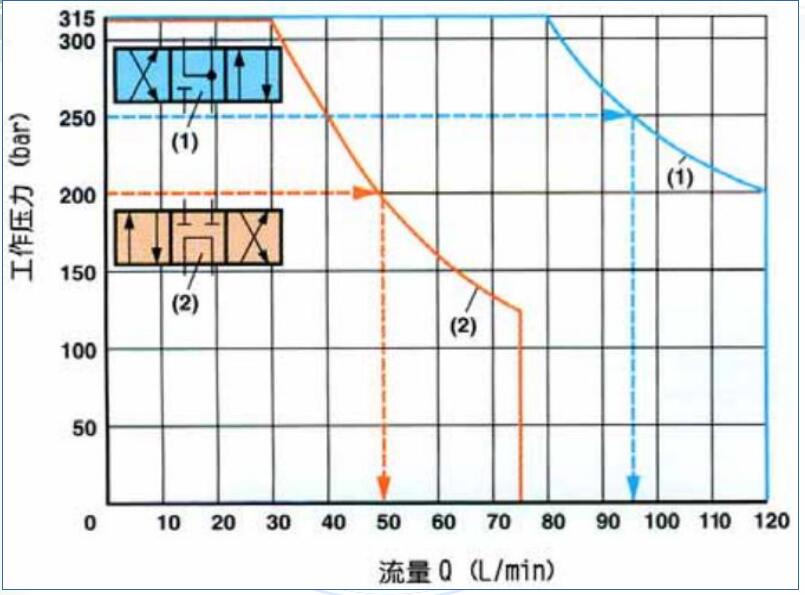 | 三位四通换向阀开关容量界限特性曲线 | ||