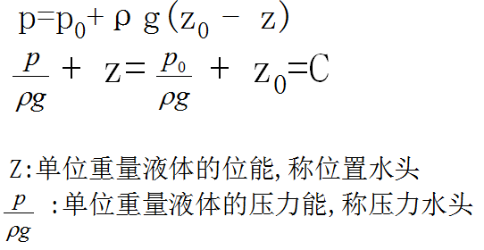 液体静压力基本方程:反映了在重力作用下静止液体中的压力分布规律