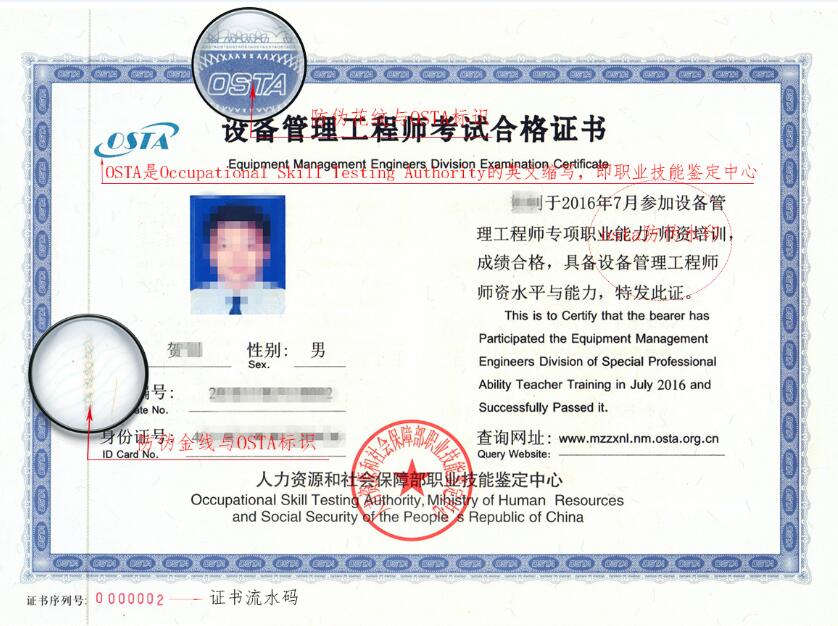 设备管理工程师考试合格证书,由人力资源和社会保障部职业技能鉴定中心主考,我院培训部可帮助报名、并进行考培辅导。 欢迎以下人员报考:设备管理人员、设备点检员、机修人员、电气维修人员 设备管理工程师证书样本: