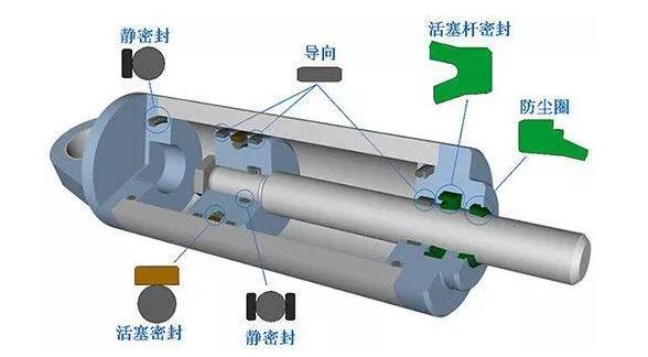 三、采用橡胶密封组件来实现密封作用 这种密封一般都是组合类型具有两种密封件的特点,在工作中共同发挥起到密封的作用。就拿格莱圈来说,它是由橡胶O形密封圈和聚四氟乙烯的格莱圈组合而成。在工作中利用o型橡胶圈良好的弹性产生预和自润性,使其在液压缸密封中使用的寿命更长。