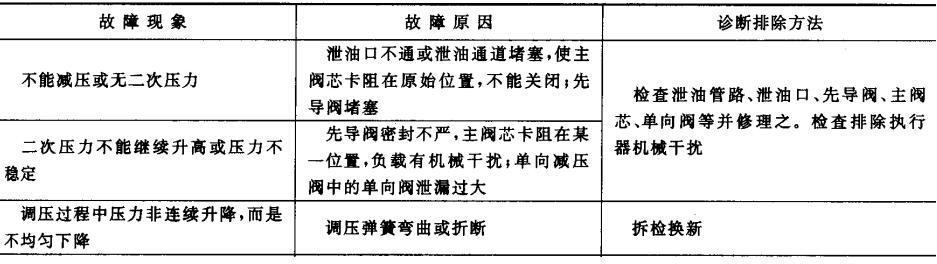 液压减压阀常见故障及诊断排除